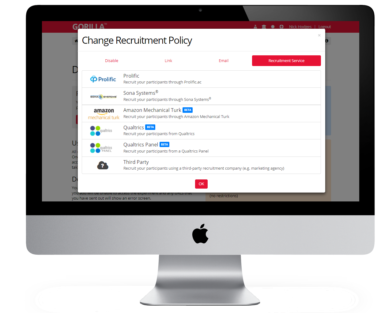Gorilla is a tools-first platform. We believe that everything you do in Gorilla should be via a clear, intuitive interface, allowing you to configure your tasks and experiments quickly and easily.